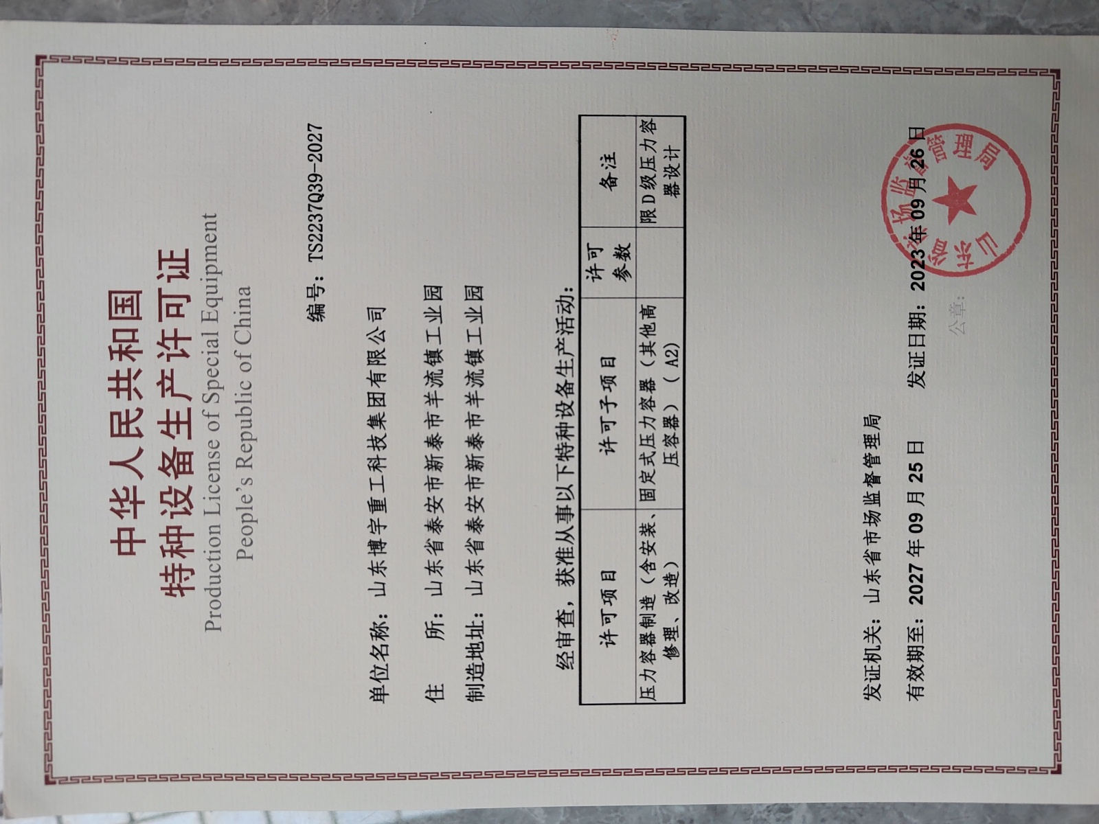 山東博宇重工科技有限公司,坐落在五岳之尊、風(fēng)景秀麗的泰山腳下,公司占地面積160000平方米,建筑面積100000平方米,擁有固定資產(chǎn)陸仟壹佰陸拾萬元整,現(xiàn)有職工760人,其中工程技術(shù)管理人員118人,副高職稱5人,初、中級(jí)職稱25人,公司獲得國家質(zhì)檢總局授予的A2類壓力容器制造許可證,A級(jí)鍋爐部件資質(zhì),起重機(jī)生產(chǎn)制造許可證,且質(zhì)量管理通過了ISO9001:2008質(zhì)量認(rèn)證。